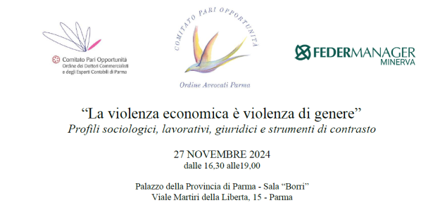 In occasione della giornata Internazionale per l’eliminazione della violenza contro donne e ragazze, Federmanager Minerva insieme al CPO dell’Ordine degli Avvocati di Parma e al CPO dell’OCEC di Parma organizza un evento dal titolo: “La violenza economica è violenza di genere”. Profili sociologici, lavorativi, giuridici e strumenti di contrasto, che si terrà il 27 novembre…