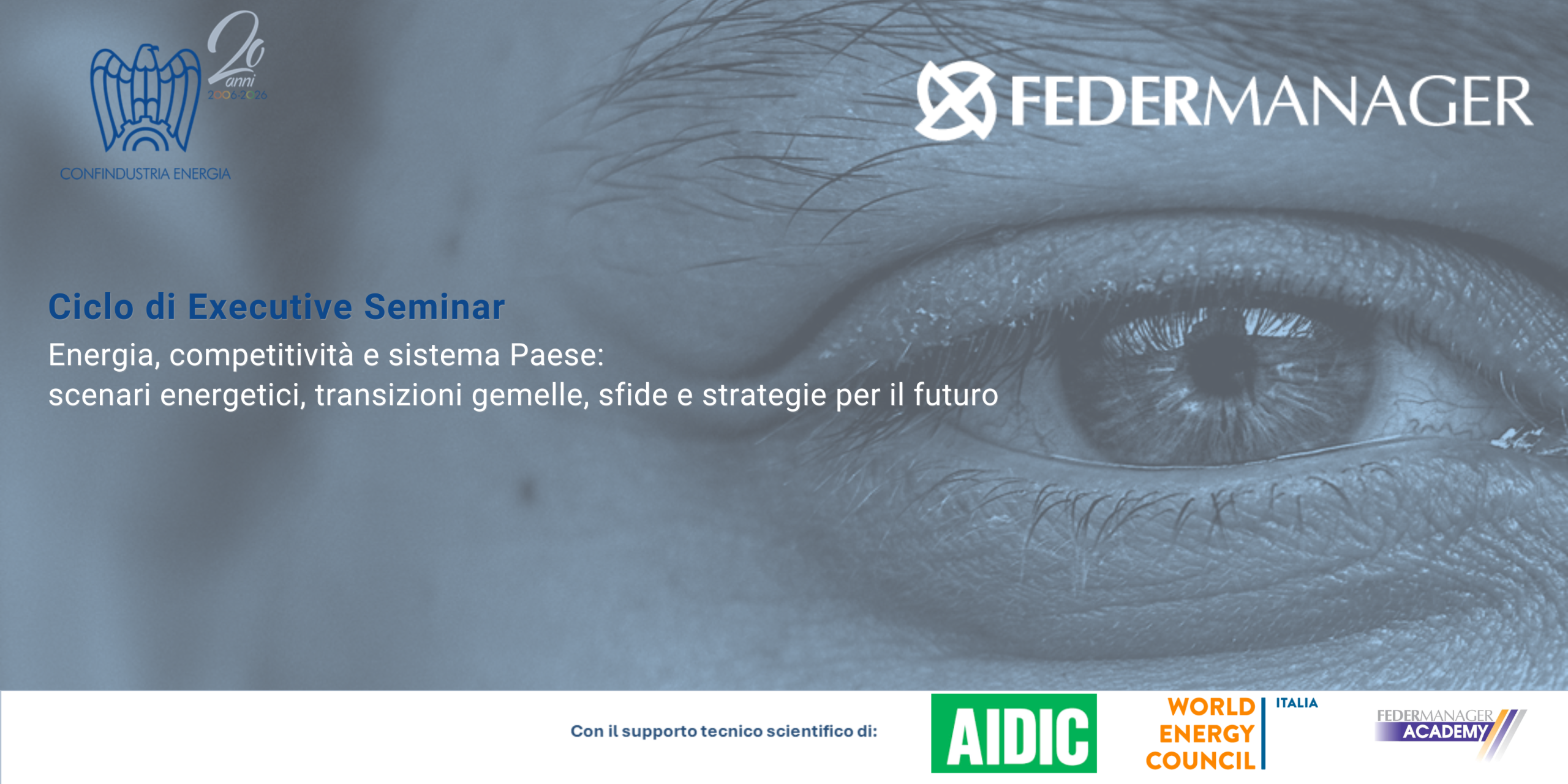 Il ciclo di Executive Seminar promosso da Federmanager e Confindustria Energia, con il contributo scientifico di World Energy Council Italia, Associazione Italiana Di Ingegneria Chimica e Federmanager Academy, nasce per offrire ai manager strumenti concreti per interpretare il cambiamento e guidarlo.