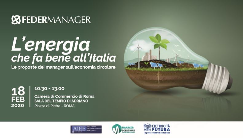 Martedì 18 febbraio presentazione del Rapporto Federmanager/Aiee “Transizione verde e sviluppo. Può l’economia circolare contribuire al rilancio del sistema Italia?”